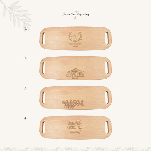 Wood Serving Tray with Handles on Both Ends with Mother's Day Designs