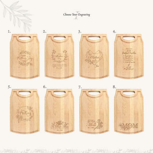 Large Wood Cutting Board with Handle and Mother's Day Designs
