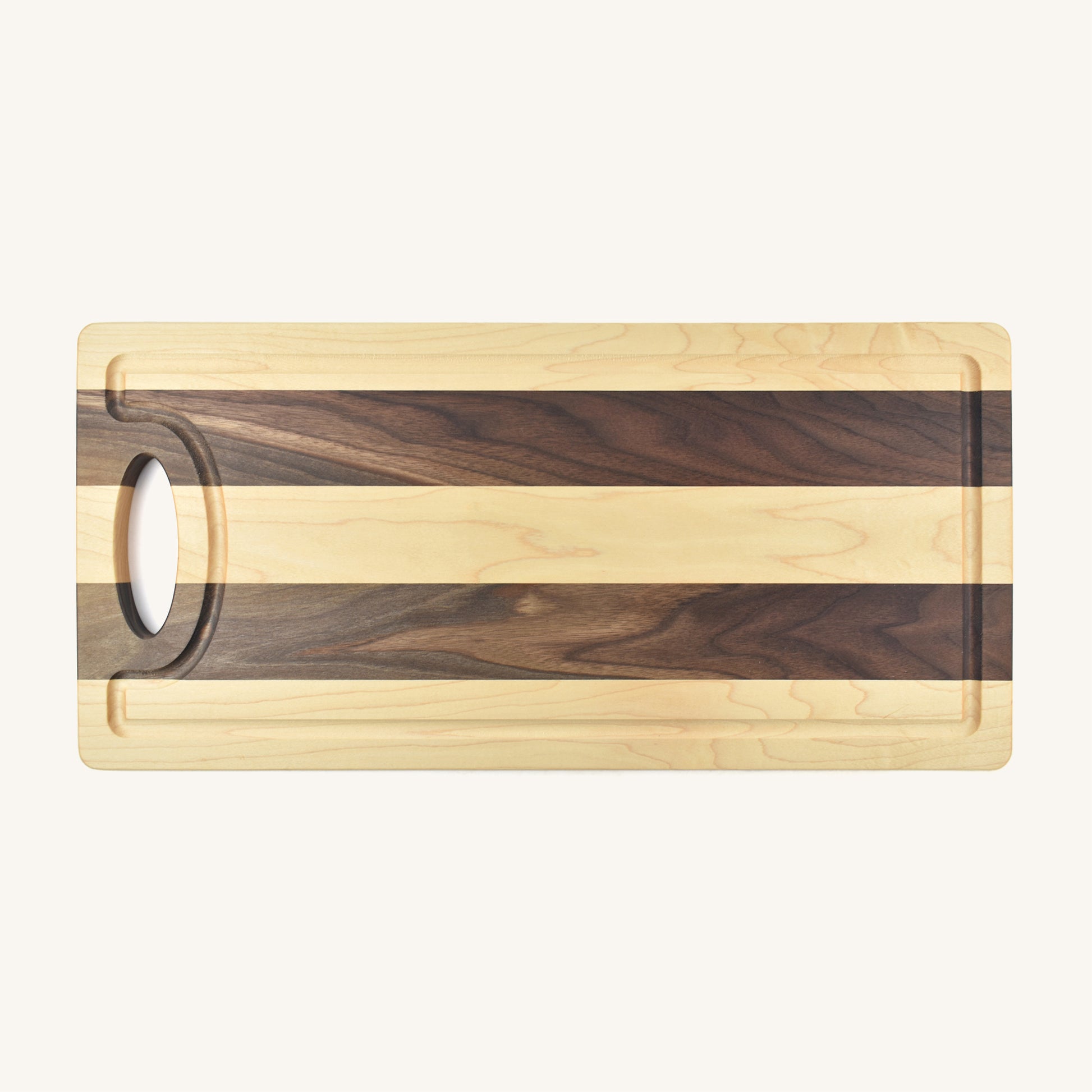 Cette magnifique planche à découper/de service multi-essences de bois témoigne du savoir-faire et de l’attrait époustouflant. Fabriqué à partir de bois dur d'érable et de noyer d'Amérique du Nord, il offre non seulement une durabilité, mais ajoute également une touche d'élégance à n'importe quelle table. Les couleurs et les grains contrastés des bois créent une présentation visuellement époustouflante.